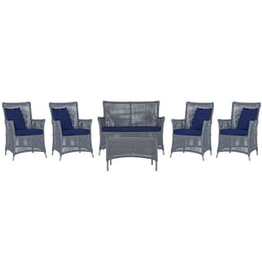 Jogo Sofá e 4 Poltronas e Mesa Igapó Alumínio - Prata