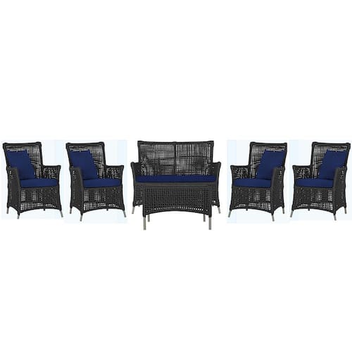 Jogo Sofá e 4 Poltronas e Mesa Igapó Alumínio - Preto
