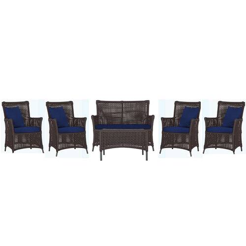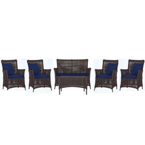 Jogo Sofá e 4 Poltronas e Mesa Igapó Alumínio - Marrom Chocolate