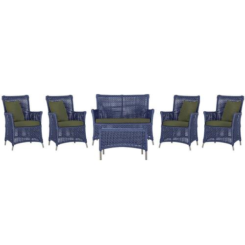 Jogo Sofá e 4 Poltronas e Mesa Igapó Alumínio - Azul