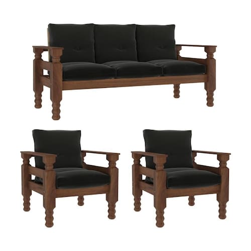 Jogo Sofá Madeira Maciça 3 Lugares e 2 Poltronas Liz Multimóveis CR7001 Grafite - Cinza