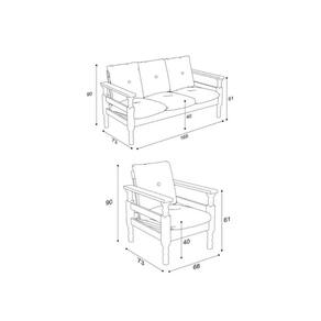 O Jogo Sofá Madeira Maciça 3 lugares e 2 Poltronas Liz Multimóveis é produzido em madeira maciça (pinus) proveniente de reflorestamento e possui almofadas soltas preenchidas com flocos de espuma e revestidas em poliéster, que garante maior conforto e durabilidade. Uma ótima opção para deixar sua sala de estar acolhedora para curtir os melhores momentos com a família ou amigos.O sofá suporta até 260kg e cada poltrona suporta até 100kg.