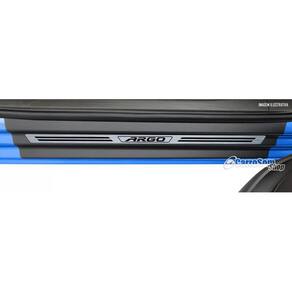 A Soleira de Porta protege o carro contra riscos além de proporcionar um visual esportivo para o veículo. Confeccionada em adesivo resinado, a Soleira de Porta é autocolante e de fácil instalação. Estão inclusas 4 soleiras de porta e 4 soleiras em vinil para proteger as 4 portas do seu veículo.