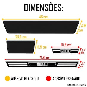 OBS.: A LARGURA da soleira Blackout (Vinil Preto) VARIA de acordo com o veículo para garantir a proteção da pintura.