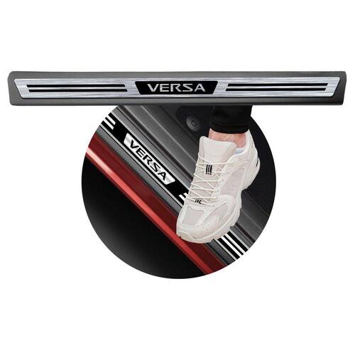 Jogo Soleira Premium Elegance Versa 2021 - 4 Portas ( Vinil + Resinada 8 Peças ) - Cor: Vinil + Aço Escovado