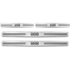 A soleira resinada exclusiva, fixada nos pisantes do veículo, impede a danificação do mesmo devido ao fluxo de motorista e passageiros, no ato do embarque e desembarque. Além de sua importâcia na conservação do carro, possui uma aparência única, pelo seu visual moderno e elegante.