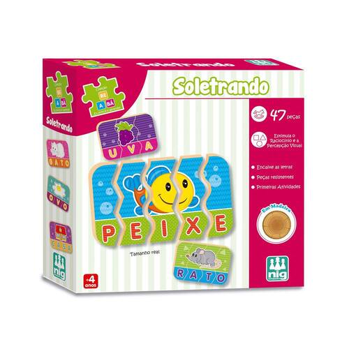 O jogo Soletrando, da Nig, foi pensado especialmente para estimular o aprendizado da escrita, a formação de palavras e as primeiras atividades durante o desenvolvimento infantil. Ideal para auxiliar no aprendizado dos pequenos na fase pré-escolar, conta com 47 peças em madeira altamente resistente para garantir mais durabilidade e apresenta cores alegres para tornar o aprendizado ainda mais divertido. A criança deve encaixar as letras para formar a palavra desejada, exibindo o desenho referente, como um quebra-cabeças. Além de muito descontraído, proporcionará deliciosos momentos de aprendizagem durante essa fase tão importante na vida de quem é especial para você.
