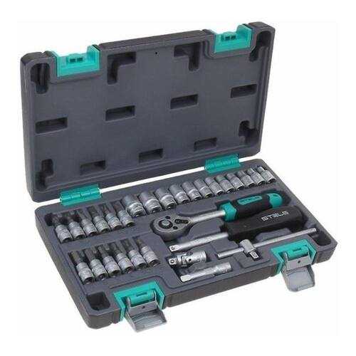 Jogo de soquete e catraca 1/4 pol de 4 à 13 mm aço cr-V com 29 peças stels