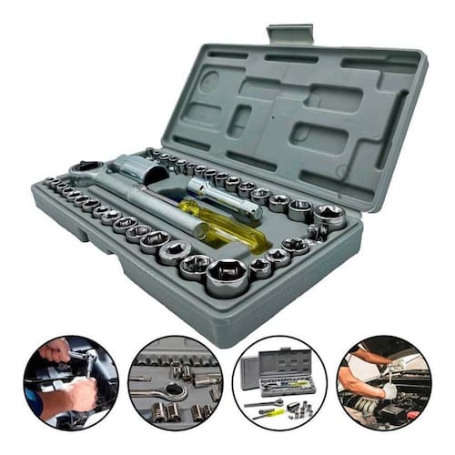 Com 40 peças no total o jogo é composto de soquetes com medidas em Milímetros e Polegadas.