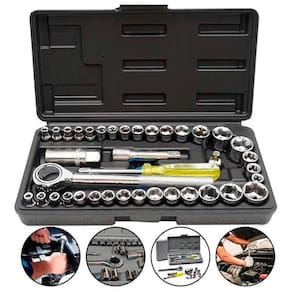 Com 40 peças no total o jogo é composto de soquetes com medidas em Milímetros e Polegadas.
