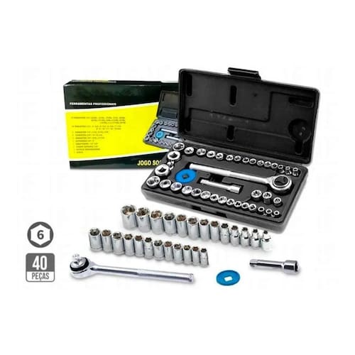 Jogo de Soquete Kit 40 Peças Chave Catraca Reversível Ferramenta + Maleta Sextavado Pito Vela Canhão Torque O Jogo de chaves mais soquetes sextavados em aço carbono LUATEK é indicado para trabalhos de aperto e desaperto de porcas e parafusos sextavados. Com 40 peças no total o jogo é composto de soquetes com medidas em Milímetros e Polegadas. Além dos soquetes, compõem o jogo: extensor de 3, chave catraca 3/8, chave direcional de 21mm, disco de reversão 6, 1 adaptador, 1 chave de manopla e estojo organizador. O que é o Disco Azul que acompanha o KIT Essa peça azul chama-se DISCO DE REVERSÃO. Ela tem a função de auxiliar o operador na mudança de posição apertar/afrouxar da catraca. Modo de utilizar: 1 - Coloque o disco no pino quadrado. 2 - Com uma das mãos segura o disco azul com o dedo indicador e polegar. 3 - Com a outra mão gire a peça preta que fica na parte traseira da catraca. -------------------- Especificações Técnicas: MATERIAL Aço carbono e PE -------------------- ITENS INCLUSOS 14 Soquetes 1/4' : 5/32 , 3/16 , 7/32 , 1/4 , 9/32 5/16 , 11/32 , 3/8 , 13/32 , 7/16 15/32 , 1/2 , 17/32 , 9/16 14 Soquetes 1/4' : 4 / 4.5 / 5 / 5.5 / 6 / 6.5 / 7 / 7.5 /8 / 9 / 10 / 11 / 12 / 13 mm 3 Soquetes 1/4' : 1/4 , 5/16 , 3/8 2 Soquetes 3/8' : 14 / 15mm 2 Soquetes 3/8' : 5/8 , 11/16 1 Extensor 3/8' : 3' 1 Adaptador : 1/4' - 3/8 1 Chave Catraca : 3/8' 1 Estojo organizador 1 Disco de reversão Marca: Não Informado