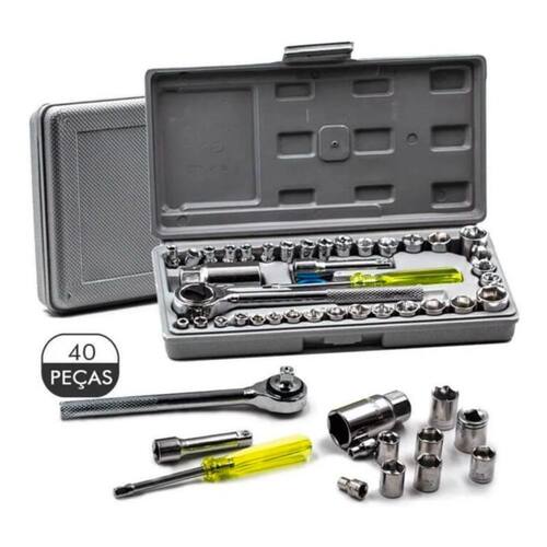 Jogo de Soquete Kit 40 Peças Chave Catraca Reversível Ferramenta + Maleta Sextavado Pito Canhão Profissional O Jogo de chaves mais soquetes sextavados em aço carbono LUATEK é indicado para trabalhos de aperto e desaperto de porcas e parafusos sextavados. Com 40 peças no total o jogo é composto de soquetes com medidas em Milímetros e Polegadas. Além dos soquetes, compõem o jogo: extensor de 3, chave catraca 3/8, chave direcional de 21mm, disco de reversão 6, 1 adaptador, 1 chave de manopla e estojo organizador. O que é o Disco Azul que acompanha o KIT Essa peça azul chama-se DISCO DE REVERSÃO. Ela tem a função de auxiliar o operador na mudança de posição apertar/afrouxar da catraca. Modo de utilizar: 1 - Coloque o disco no pino quadrado. 2 - Com uma das mãos segura o disco azul com o dedo indicador e polegar. 3 - Com a outra mão gire a peça preta que fica na parte traseira da catraca. -------------------- Especificações Técnicas: MATERIAL Aço carbono e PE -------------------- ITENS INCLUSOS 14 Soquetes 1/4' : 5/32 , 3/16 , 7/32 , 1/4 , 9/32 5/16 , 11/32 , 3/8 , 13/32 , 7/16 15/32 , 1/2 , 17/32 , 9/16 14 Soquetes 1/4' : 4 / 4.5 / 5 / 5.5 / 6 / 6.5 / 7 / 7.5 /8 / 9 / 10 / 11 / 12 / 13 mm 3 Soquetes 1/4' : 1/4 , 5/16 , 3/8 2 Soquetes 3/8' : 14 / 15mm 2 Soquetes 3/8' : 5/8 , 11/16 1 Extensor 3/8' : 3' 1 Adaptador : 1/4' - 3/8 1 Chave Catraca : 3/8' 1 Estojo organizador 1 Disco de reversão Marca: Não Informado