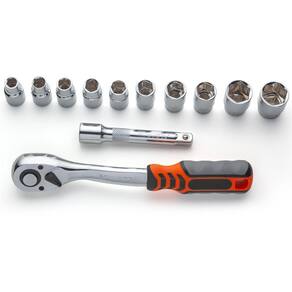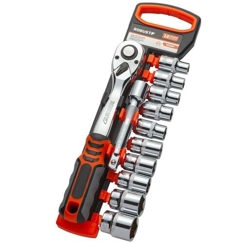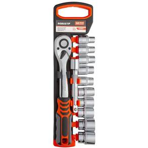 Jogo de Soquetes Sextavados 1/2 polegada com 12 peças e Catraca Reversível marca Robust Um jogo compacto perfeito para a manutenção e consertos gerais. Uma opção excelente para profissionais autônomos e hobbistas que se dedicam à reparação em diversas áreas. Ótimo também para deixar dentro de seu carro. O conjunto possui 10 soquetes sextavados, de 10mm à 24mm, com acabamento cromado espelhado. E uma extensão de 12,5cm para alcance em áreas de difícil acesso. Catraca reversível com empunhadura emborrachada para maior firmeza, ergonomia e agilidade. Haste com ângulo de trabalho em 15 graus para facilitar atividades em áreas de difícil acesso. A Robust é uma linha de ferramentas pertencente a marca Gedore, fundada há mais de 100 anos na Alemanha, e reconhecida por ser Líder Mundial na fabricação de Ferramentas de qualidade. A ROBUST contempla produtos voltados às necessidades do público hobbista. Informações do produto: - Acabamento cromado espelhado - 10 soquetes sextavados: 10, 11, 12, 13, 14, 15, 17, 18, 22, 24mm - Extensão 12,5cm - Catraca reversível com empunhadura e ângulo de trabalho - Haste com ângulo em 15 graus - Em suporte prático para armazenamento e transporte - Medidas do conjunto: Comprimento 34cm x Largura 9,7cm x Altura 4,7cm - Peso do conjunto: 1,52 kg - de 1 ano para defeitos de fabricação e matéria-prima. ROBUST, a ferramenta com qualidade alemã. Marca: Não Informado