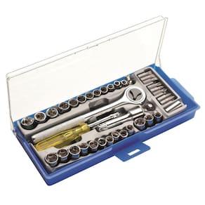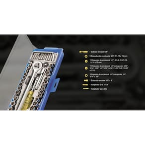 Jogo de Soquetes Catraca Bits 40 Peças Estojo 8ZI EXCELLENT EDA. Acompanha estojo para organização das peças Itens Inclusos 1 Estojo para transporte e organização das peças 1 Chave de catraca reversível de encaixe 3/8" e 7" de comprimento 1 Extensão para soquetes de 3" encaixe 3/8" 1 Adaptador 3/8" x 1/4" 1 Adaptador para bits 1 Cabo fenda para soquetes 2 Bits Pozidriv 25 mm: PZ1 e PZ2 3 Soquetes de encaixe de 3/8": 11, 12 e 13mm 3 Soquetes de encaixe de 1/4" octogonais: 1/4", 5/16" e 3/8" 3 Bits de fenda 25 mm: 5, 6 e 7mm 3 Bits Phillips 25 mm: PH1, PH2 e PH3 10 Soquetes de encaixe de 1/4": 4, 5, 6, 7, 8, 9, 10, 11, 12 e 13mm 10 Soquetes de encaixe de 1/4" octogonais: 5/32", 3/16", 7/32", 1/4", 9/32", 5/16", 11/32", 3/8", 13/32" e 7/16" Dimensões do estojo: 4cm x 12cm x 25cm Peso bruto: 880g
