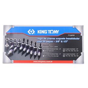 Jogo soquetes tork encaixe 3/8 e 1/2 20 pç 7120pr king tony