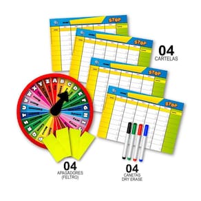 Jogo Stop Brincadeira Infantil Clássica Tabuleiro Didático Com Cartelas Reutilizáveis