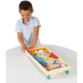 Super Pinball de Madeira - Janod Brinquedos Transforme o momento de brincar em uma verdadeira aventura de concentração, coordenação e diversão com o Super Pinball de Madeira da Janod! Inspirado nos clássicos jogos de pinball, este brinquedo combina a nostalgia com um design moderno e portátil, desenvolvido com toda a qualidade e segurança que só a Janod oferece.
