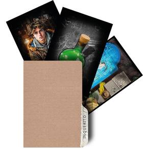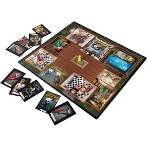 Contém: 1 Tabuleiro da mansão, 24 Cartas, 1 Bloca de anotações, 6 Pinos de detetives,