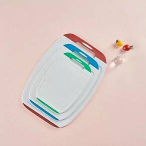Ação antimicrobiana KLEON protege ao longo de toda a superficie de corte e punho; Alça com material suave; Dispositivo anti-deslizamento na bancada; Uso reversível em ambos os lados; Superfícies não porosas e não absorventes; Seguro para uso em lavadouras de louça; Não deixam as facas cegas; Coletor de suco nas bordas. O uso de tecnologias antimicrobianas torna os produtos mais ecológicos, protegendo-os contra os efeitos prejudiciais das bactérias, fungos e mofo. Produtos que ficam limpos e novos por mais tempo reduzem o impacto ambiental causado por lavagens muito frequentes, o uso excessivo da lavadora e do produto. A tecnologia KLEON está comprometida com a gestão ambiental e utiliza uma grande variedade de tecnologias antimicrobianas e formulações com características ecológicas, incluindo pouco ou nenhum produto VOC, nenhuma formulação contendo formaldeído, materiais plásticos ou borrachas recicladas e formulações compatíveis com padrões ambientais e regulatórios tais como o RoHS. Código: CB-BJ-3PCS Ean: 8806179670226