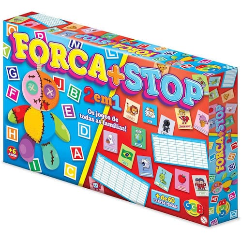 Kit imperdível com 2 super jogos. É diversão para toda a família Jogo Tabuleiro Stop e ForcaEsse jogo é um clássico da infância, adaptado para deixar a brincadeira mais prática e dinâmica.ESPECIFICAÇÕES:- Conteúdo da Embalagem: - 2 Bases jogo da Forca - 100 Letras -60 Temas - 48 Folhas para escrever - Tamanho da embalagem AxL : 25 x 32cm x 5,5- Idade: 6+ anos- Material: Papel Cartonado- Marca: GGB Plast- Selo de Segurança INMETRO Homologação Inmetro: CE-BRI/ICEPEX-N 01264-25-46