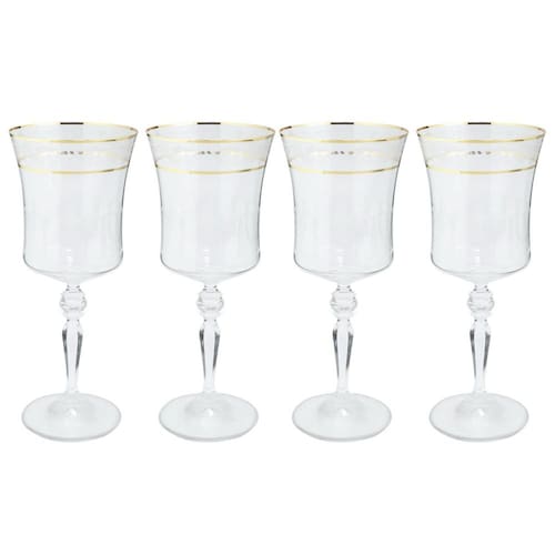 Kit 4 Taças de Água Grace 300ml - Cristal com Friso Dourado Beleza e sofisticação para a sua mesa O Kit com 4 Taças Grace é ideal para servir água com elegância em qualquer ocasião. Com design refinado e acabamento em friso dourado, essas taças de cristal trazem um toque de luxo e bom gosto à sua recepção ou refeição. Destaques do produto: Friso dourado que valoriza o design Cristal de alta qualidade e brilho intenso Capacidade de 300ml por taça Ideal para água, sucos ou bebidas não alcoólicas Kit com 4 taças elegantes Especificações: Linha: Grace Material: Cristal Capacidade: 300ml por taça Quantidade: 4 taças Leve requinte para todos os momentos com o Kit Grace. Marca: Não Informado