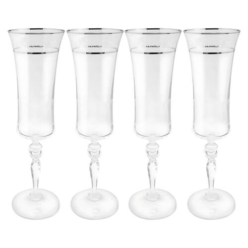 Kit 4 Taças de Champanhe Grace 300ml - Cristal com Friso Platino Celebre com elegância e bom gosto O Kit com 4 Taças Grace é ideal para momentos especiais, trazendo sofisticação à mesa com seu friso platino delicadamente decorado. Feitas em cristal de alta qualidade, combinam transparência, brilho e acabamento refinado para brindar com estilo. Destaques do produto: Acabamento com friso platino, moderno e elegante Cristal translúcido de alta qualidade Capacidade generosa de 300ml Ideal para champanhes, espumantes e coquetéis leves Kit com 4 taças decoradas e sofisticadas Especificações: Linha: Grace Material: Cristal Capacidade: 300ml por taça Quantidade: 4 taças Marca: Não Informado
