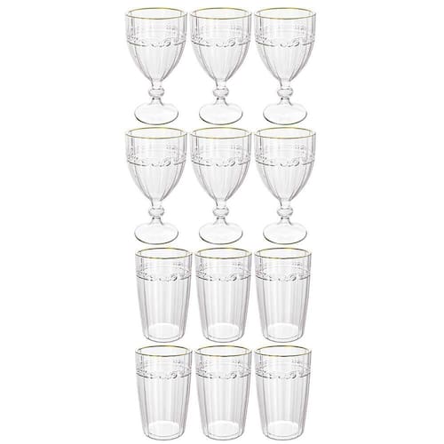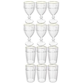 Jogo De Taças E Copos De Cristal Imperial Fio De Ouro 12 Peças - Lyor 5742/6 E 5740/6 Conjunto De 6 Taças e Copos Imperial Transparente Fio de Ouro - Lyor