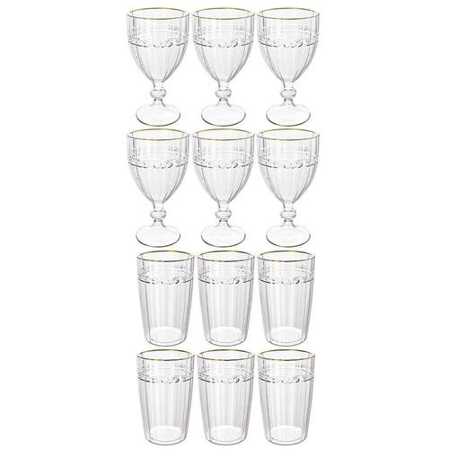 Jogo De Taças E Copos De Cristal Imperial Fio De Ouro 12 Peças - Lyor 5742/6 E 5740/6 Conjunto De 6 Taças e Copos Imperial Transparente Fio de Ouro - Lyor