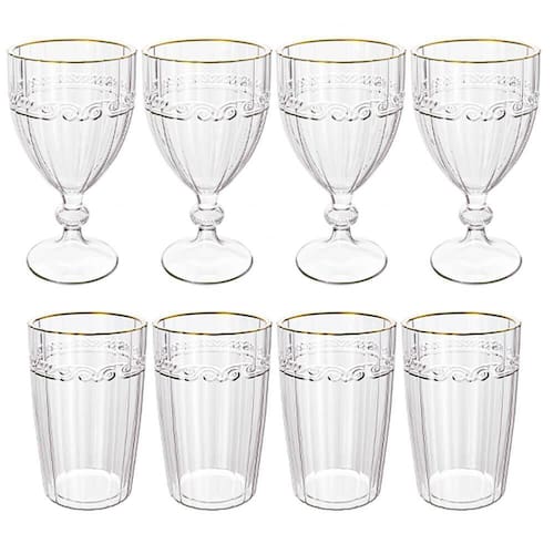 Jogo De Taças E Copos De Cristal Imperial Fio De Ouro 8 Peças - Lyor 5742/4 E 5740/4 Conjunto De 4 Taças e Copos Imperial Transparente Fio de Ouro - Lyor