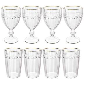 Jogo De Taças E Copos De Cristal Imperial Fio De Ouro 8 Peças - Lyor 5742/4 E 5740/4 Conjunto De 4 Taças e Copos Imperial Transparente Fio de Ouro - Lyor