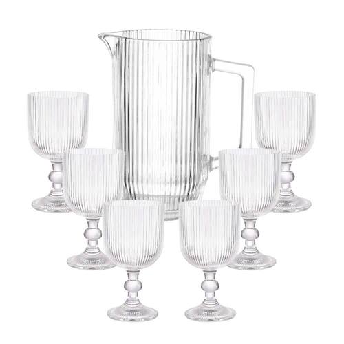 O Jogo Taças E Jarra Vidro Transparente Graffiato 7 Peças da Hauskraft é perfeito para você servir suas bebidas com elegância e requinte. Com um design moderno e sofisticado, esse conjunto é ideal para compor a decoração da sua mesa ou cristaleira.