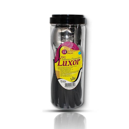 Jogo Talheres Faqueiro 24 Peças Cabo Preto 123Útil Inox Para uma cozinha linda precisamos também de bons talheres, vamos além, bons e bonitos certo a nossa linha luxor trás além da sofisticação um design super moderno para a sua cozinha. Com seu cabo curvado se diferencia de qualquer outro talher do mercado. Jogo completo com 24 peças. Itens 01 jogo talheres preto com 24 peças. Especificações Medidas aproximadas da embalagem: 21x5x34cm Peso aproximado: 575 gramas Composição: aço inox e plástico Ref.: ud342 Código barras: 7898632183443 Marca: Não Informado