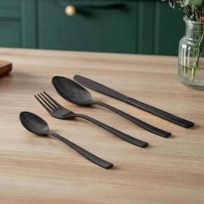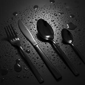 Jogo talheres mesa inox preto 16 pcs Cor: preto O conjunto de talheres serve 4 pessoas e conta com cabos ergonômicos para um manuseio seguro e confortável. As propriedades bacteriostáticas do aço tornam os talheres extremamente higiênicos e fáceis de limpar.