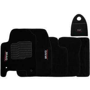 Especificações - Carpete agulhado de 05 mm em fibra de PET e resina sintética. - Acabamento em viés preto - Sistema de segurança aderente - Base resinada. - Bordado com a identificação do veículo - Durabilidade - Modelagem específica - Fácil adaptação e instalação