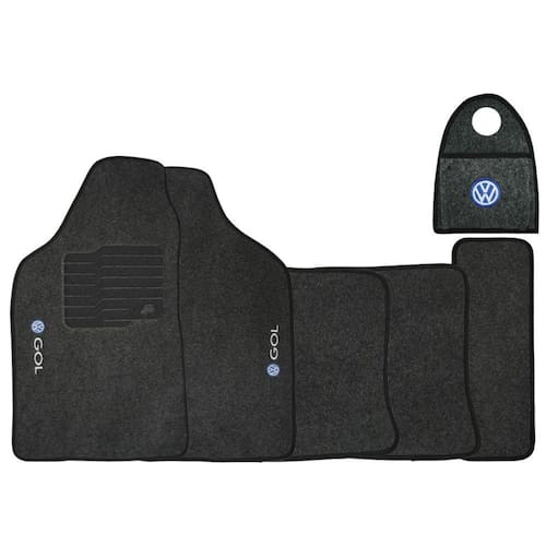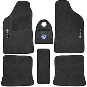 Jogo Tapete Automotivo Carpete + Lixeira Gol G3 2000 à 2005 Soft Logo Bordado Grafite 6 Peças