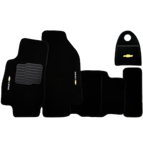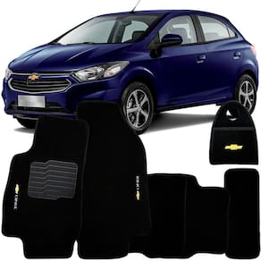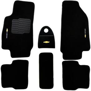 Jogo Tapete Automotivo Carpete + Lixeira Onix 2018 à 2019 Soft Logo Bordado Preto 6 Peças