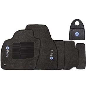 Jogo Tapete Automotivo Carpete + Lixeira Volkswagen Polo 2018 à 2019 Soft Logo Bordado Grafite 6 Pçs