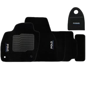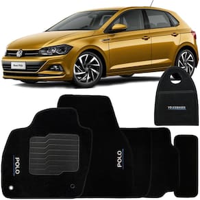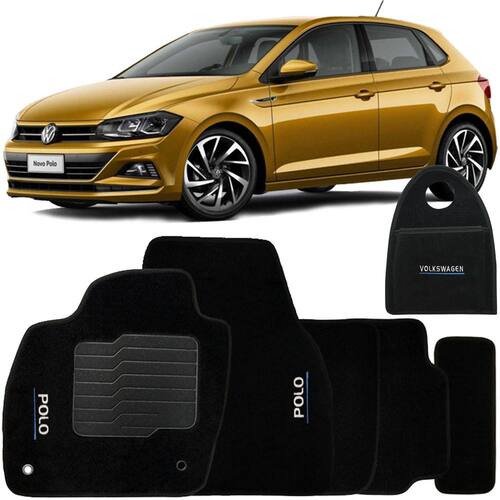 Jogo Tapete Automotivo Carpete + Lixeira Volkswagen Polo 2018 à 2019 Soft Logo Bordado Preto 6 Peças