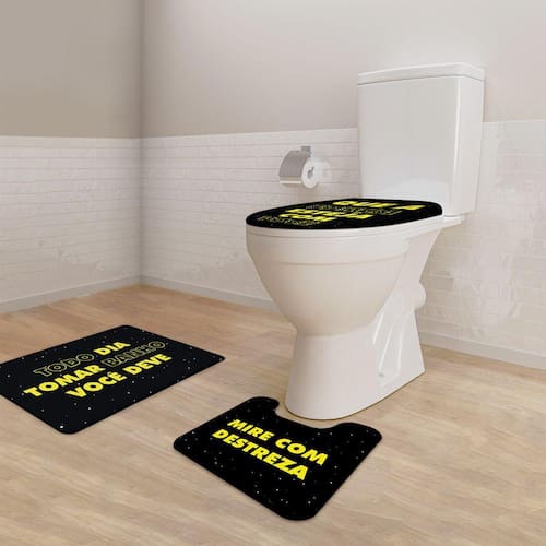 E, é claro, não poderia faltar o terceiro tapete que é perfeito para o entorno do vaso sanitário. Com formato preciso, esse tapete garante que você tenha apoio adequado ao redor do vaso, evitando escorregões e oferecendo o máximo de segurança.