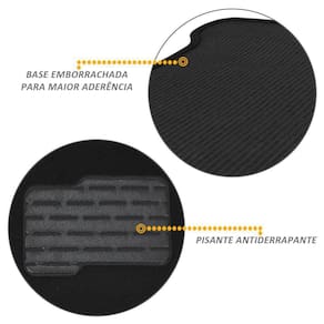 Fabricado em carpete automotivo , material já conhecido pela excelente qualidade e resistência, Além da sua base emborrachada para proporcionar uma melhor fixação no assoalho do veículo.