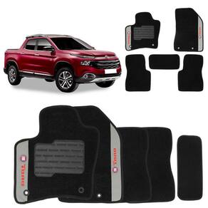 Jogo De Tapetes Carpete Fiat Toro 2016 a 2023 Preto Bordado 5 Peças
