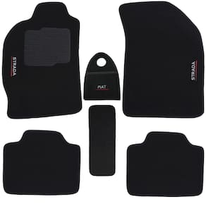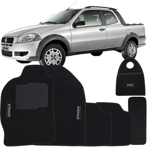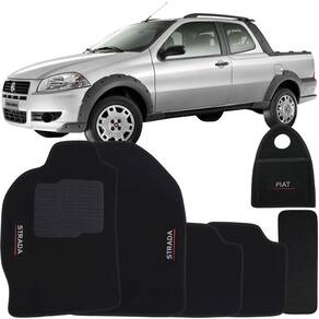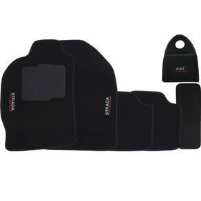 Jogo Tapete Carpete + Lixeira Fiat Strada Cab. Dupla 2007 à 2012 Soft Logo Bordado Preto 6 Peças