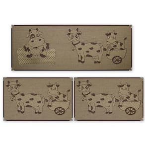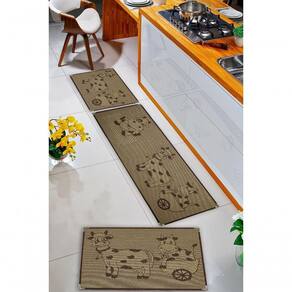 Jogo de Tapetes para Cozinha Sisal Antiderrapante KS-80 Estampa Vaquinha Marrom Kit com 3 Peças