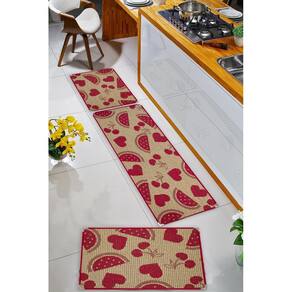 Jogo de tapetes para cozinha sisal antiderrapante ks-82 - cor vermelha com estampa de melancias, cerejas e corações - kit com 3 peçasadicione um toque divertido e acolhedor à sua cozinha com o jogo de tapetes sisal ks-82, na cor vermelha vibrante, com estampas alegres de melancias, cerejas e corações este kit é ideal para quem deseja combinar estilo e funcionalidade, criando um ambiente cheio de personalidade. Com a base antiderrapante, ele oferece segurança e conforto, tornando a limpeza mais fácil e o dia a dia na cozinha mais prático e encantador.Principais características:- estampa divertida e colorida - melancias, cerejas e corações adicionam um toque de alegria e frescor à sua cozinha.- kit com 3 peças - composto por tapetes de diferentes tamanhos, permitindo uma cobertura ideal para sua cozinha.- material durável e resistente - produzido com 87% polipropileno e 13% poliéster, garantindo longa durabilidade.- base antiderrapante - a segurança é garantida com a base 100% antiderrapante, evitando deslizamentos acidentais.- fácil de lavar - a pelagem baixa facilita a limpeza, mantendo o ambiente sempre organizado e confortável.- cor vermelha e estampa alegre - um tom vibrante e estampas charmosas que trazem mais vida e aconchego ao espaço.Dimensões do kit:01 tapete: 50 cm x 1,50 m02 tapetes: 50 cm x 80 cmcom o jogo de tapetes ks-82, você traz para sua cozinha um toque de energia, charme e praticidade. Aposte nessa combinação alegre e funcional para transformar seu ambientetags: jogo de tapetes cozinha, tapete sisal vermelho, kit tapetes cozinha, tapete estampa melancia, tapete estampa cereja, tapete estampa corações, tapete antiderrapante, tapete fácil de limpar, tapete cozinha colorido, tapete cozinha moderno, tapete divertido cozinha, tapete resistente para cozinha, tapete seguro para cozinha, tapete cozinha alegre, tapete para cozinha de qualidade, tapete com pelagem baixa, tapete com estampa divertida, tapete para ambiente acolhedor, tapete prático para cozinha, tapete cozinha com estampa colorida, jogo de tapetes com estampa alegre, tapete cozinha funcional, tapete cozinha vibrante, tapete decorativo vermelho, tapete moderno para cozinha.