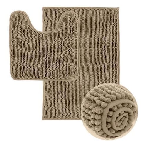 Jogo Tapete De Banheiro Macarrão 2 Peças - Bege
