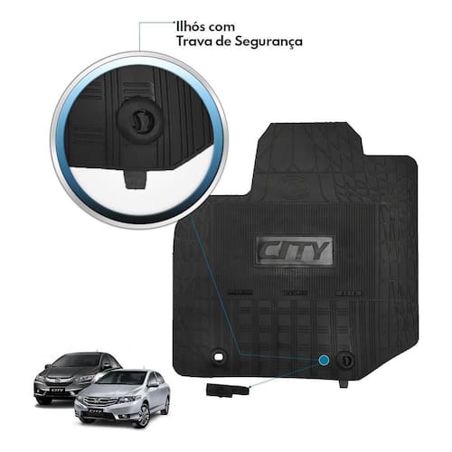 Jogo Tapete Interno Borracha Reforçado City 2009 A 2014 Preto Especifico Jogo tapetes interno borracha 3 peças - super reforçado - city 2009 a 2014