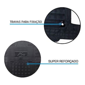 Kit jogo de 3 tapetes emborrachados super reforçados na cor preta. Produzido por empresa nacional com mais de 26 anos de experiência em projeto, fabricação e comercialização de de tapates não possuem odor, são antialérgicos, super resistentes e não deformam após a lavagem. Com uma técnica exclusiva no molde e corte, os tapetes são feitos sob medida para o veículo, garantindo assim maior proteção do assoalho e sem esquecer da estética.