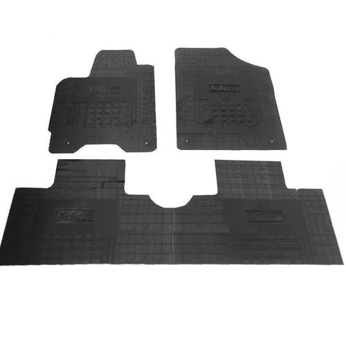 Kit jogo de 3 tapetes emborrachados super reforçados na cor preta. Possui design estriado em alto relevo, próprio para fixação de sujeira. Suas bordas são mais grossas para evitar o fácil rasgamento da peça que é muito comum em tapetes de baixa qualidade. Produzido por empresa nacional com mais de 26 anos de experiência em projeto, fabricação e comercialização de de tapetes não possuem odor, são antialérgicos, super resistentes e não deformam após a lavagem. Com uma técnica exclusiva no molde e corte, os tapetes são feitos sob medida para o veículo, garantindo assim maior proteção do assoalho e sem esquecer da estética.