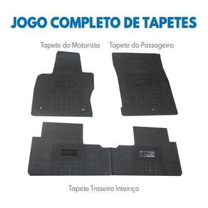 Kit jogo de 3 tapetes emborrachados super reforçados na cor preta. Possui design estriado em alto relevo, próprio para fixação de sujeira. Suas bordas são mais grossas para evitar o fácil rasgamento da peça que é muito comum em tapetes de baixa qualidade. Produzido por empresa nacional com mais de 26 anos de experiência em projeto, fabricação e comercialização de de tapetes não possuem odor, são antialérgicos, super resistentes e não deformam após a lavagem. Com uma técnica exclusiva no molde e corte, os tapetes são feitos sob medida para o veículo, garantindo assim maior proteção do assoalho e sem esquecer da estética.