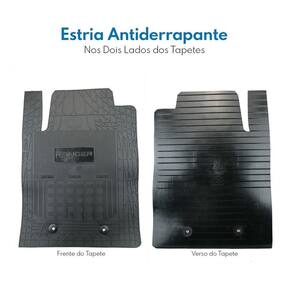 Kit jogo de 3 tapetes emborrachados super reforçados na cor preta. Possui design estriado em alto relevo, próprio para fixação de sujeira. Suas bordas são mais grossas para evitar o fácil rasgamento da peça que é muito comum em tapetes de baixa qualidade. Produzido por empresa nacional com mais de 26 anos de experiência em projeto, fabricação e comercialização de de tapetes não possuem odor, são antialérgicos, super resistentes e não deformam após a lavagem. Com uma técnica exclusiva no molde e corte, os tapetes são feitos sob medida para o veículo, garantindo assim maior proteção do assoalho e sem esquecer da estética.